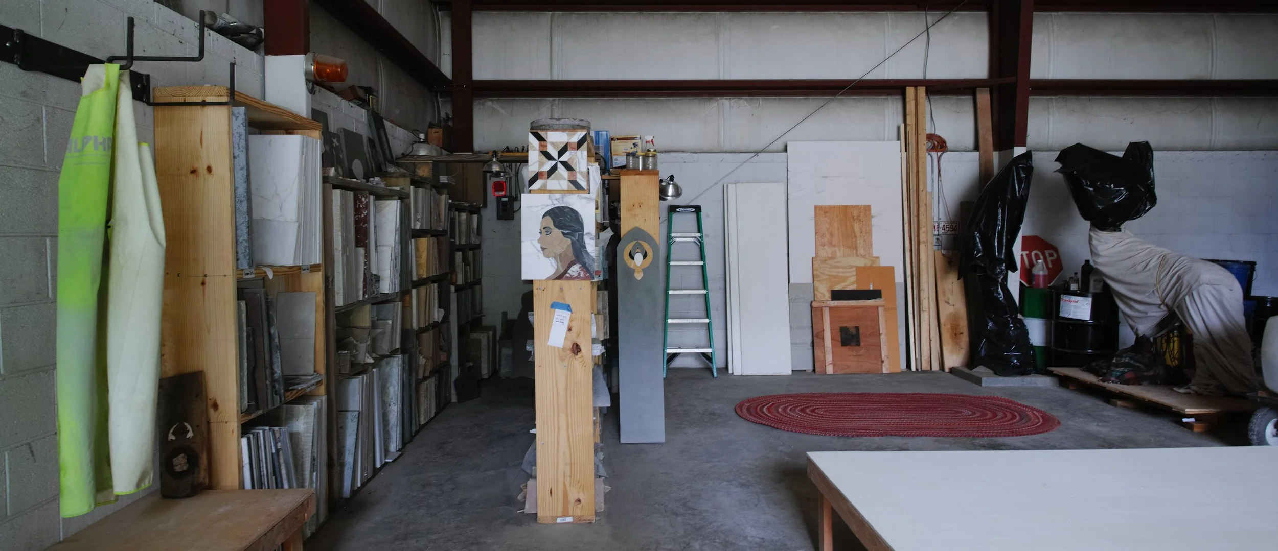 The Muses is a large mosaic made of natural stone, with bits and bobs of glass, ceramic, and metal. It is a diptych, two panels on the same wall, separated by a structural column. Each panel is 5'8" tall and 24'8" long. It is scheduled to be installed late 2026.